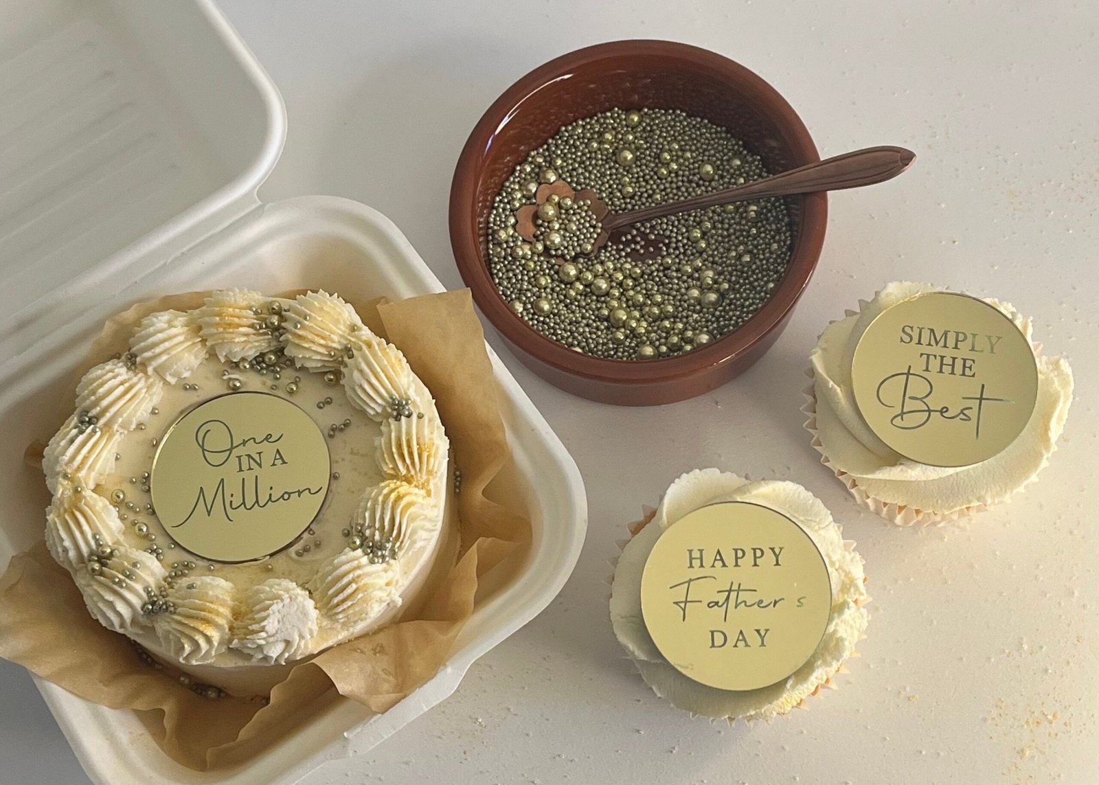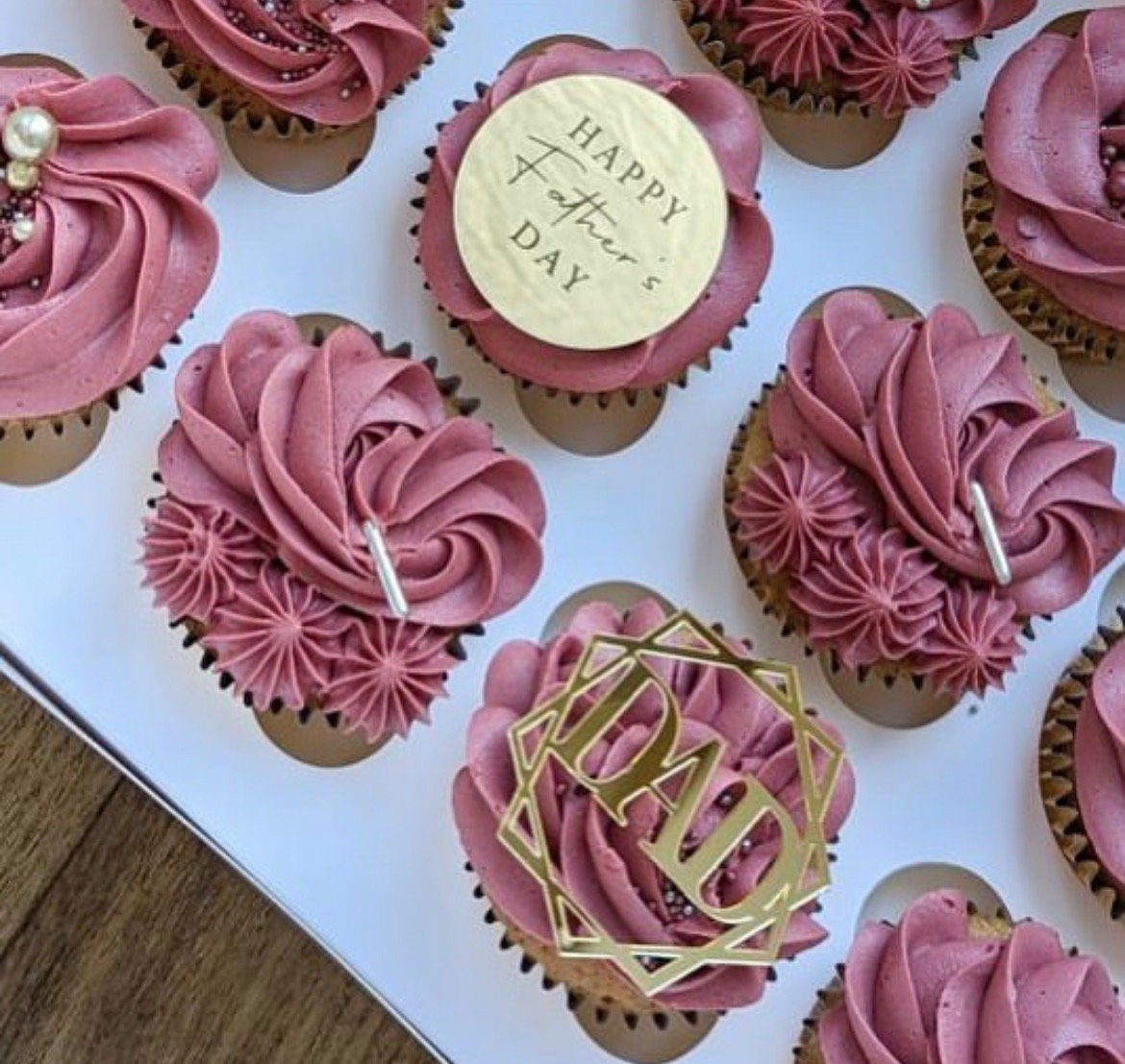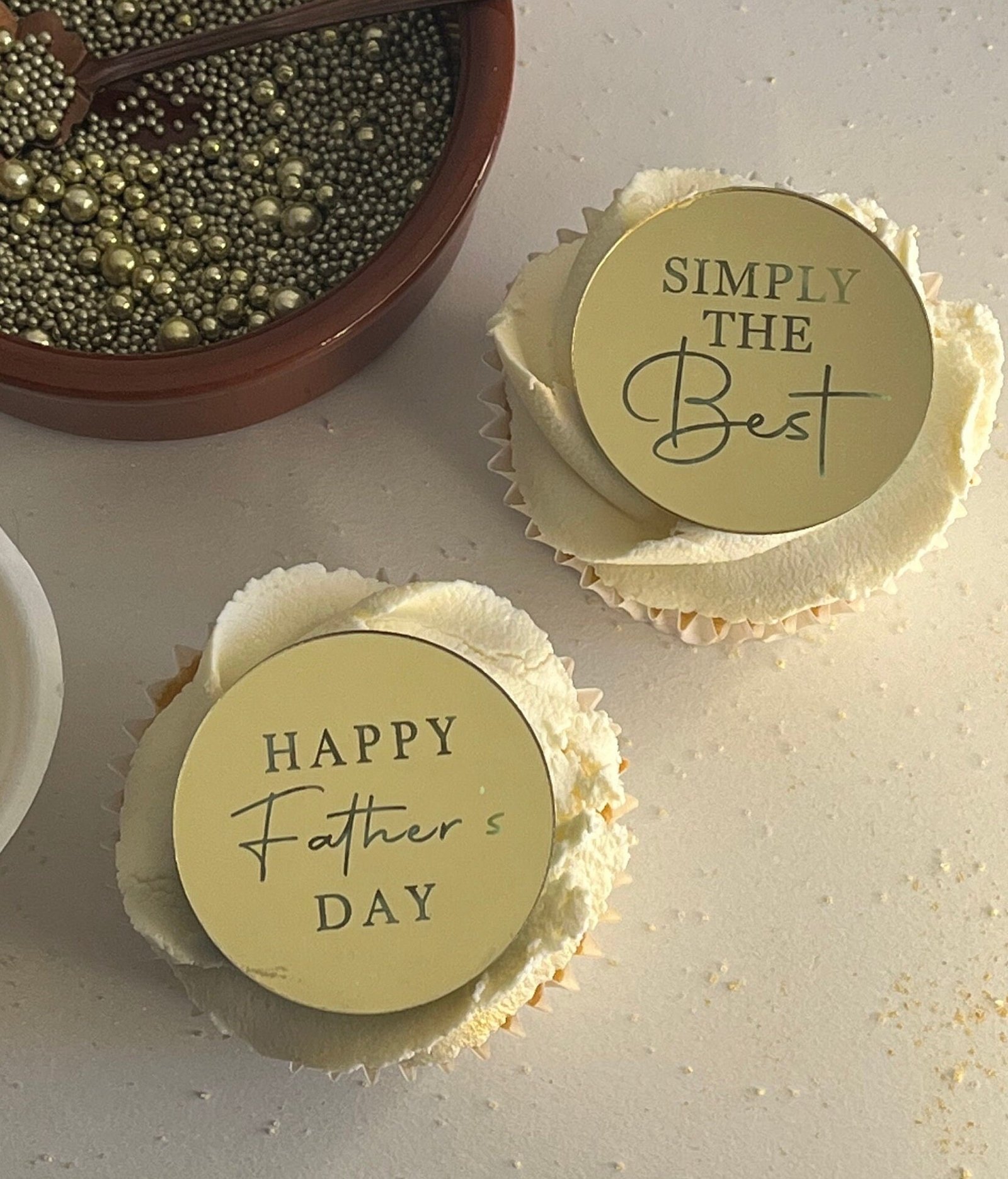 Acrylic Happy Father’s Day Cake/Cupcake Round Topper- Fathers Day Gold acrylic topper