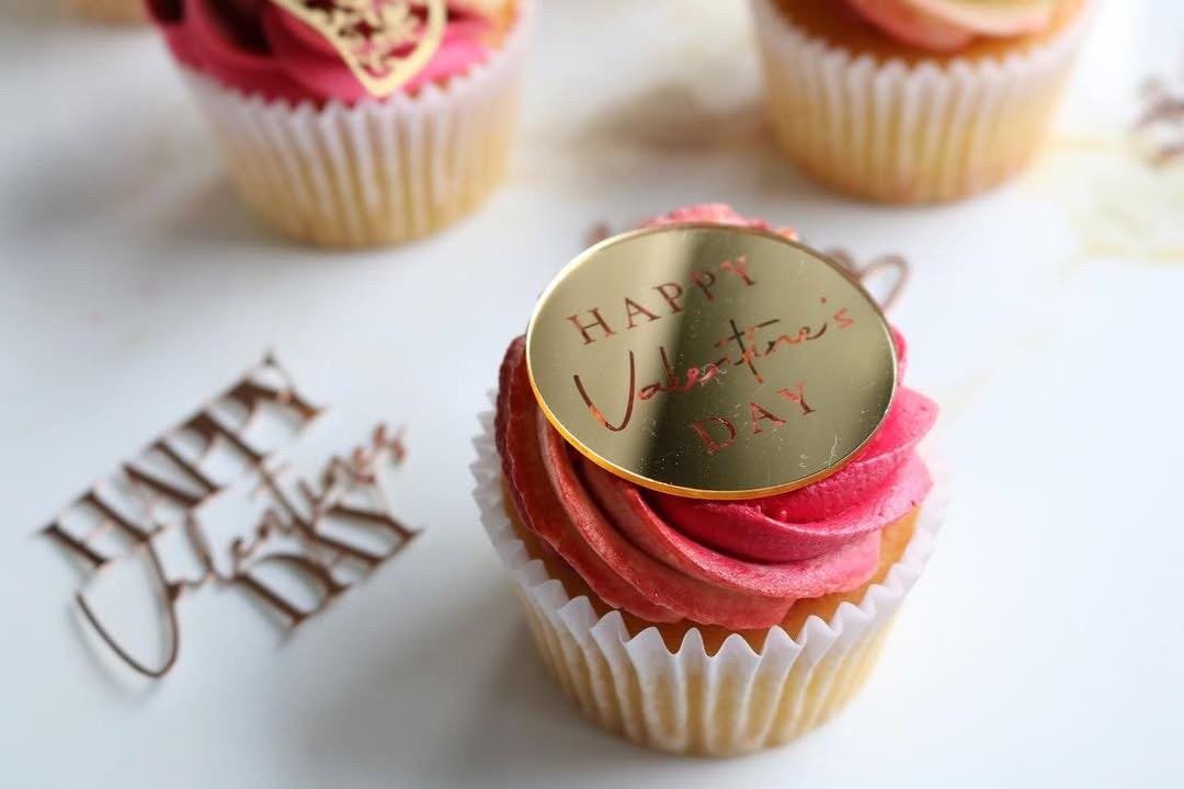 Acrylic Happy Valentines Heart Shaped Cake/Cupcake Disc Topper- Valentine’s Day acrylic topper