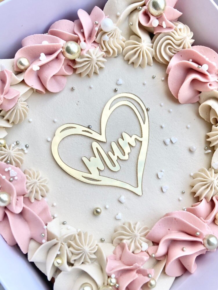 Acrylic Mum in Heart Border Cake/Cupcake Topper- love heart acrylic topper – mother’s Day
