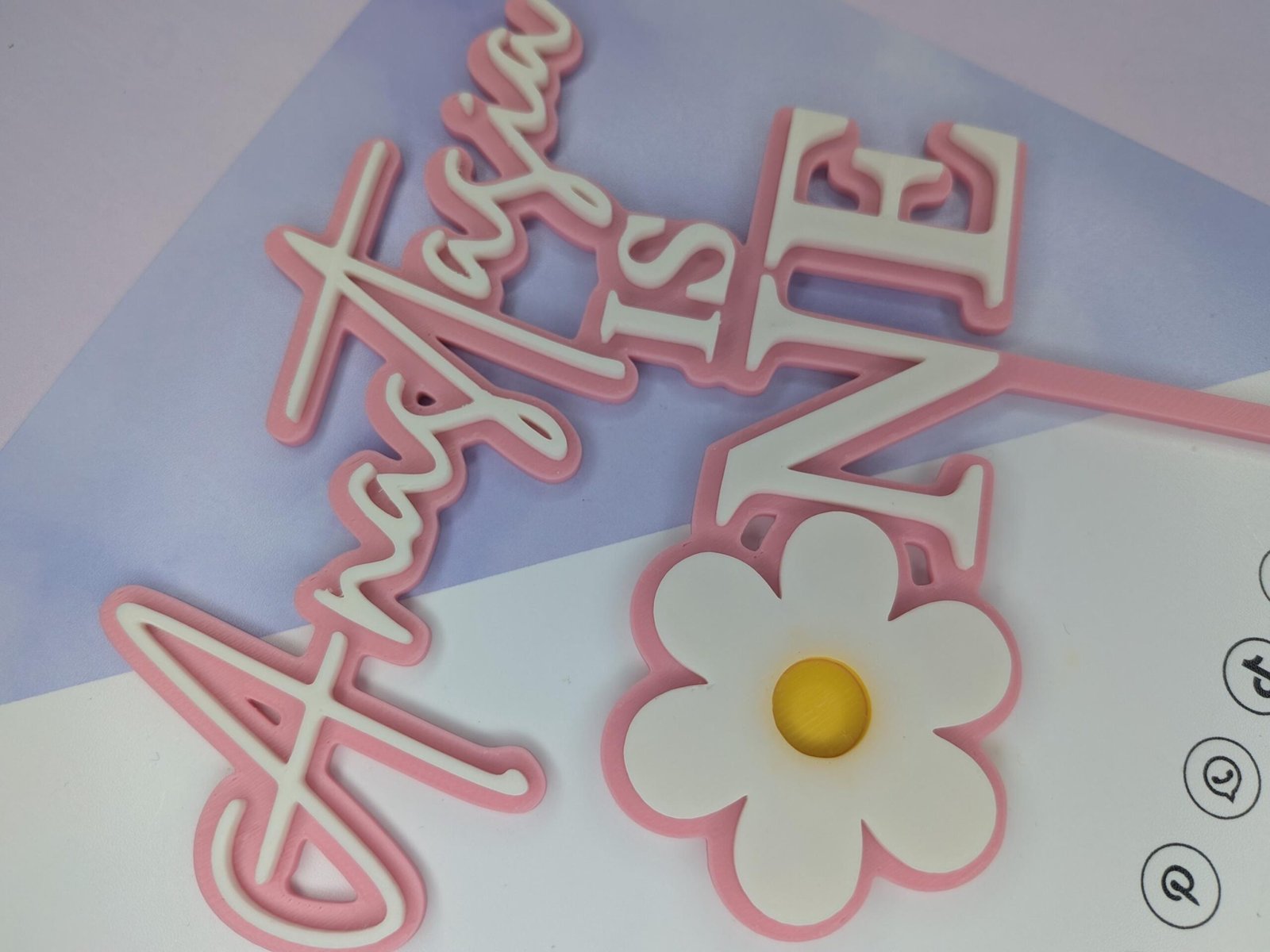 Acrylic Style Personalised One Daisy Layered Cake Topper – 3D Food Safe Printed – Any Colour – Quality PLA – Lovely Bubbly Makes