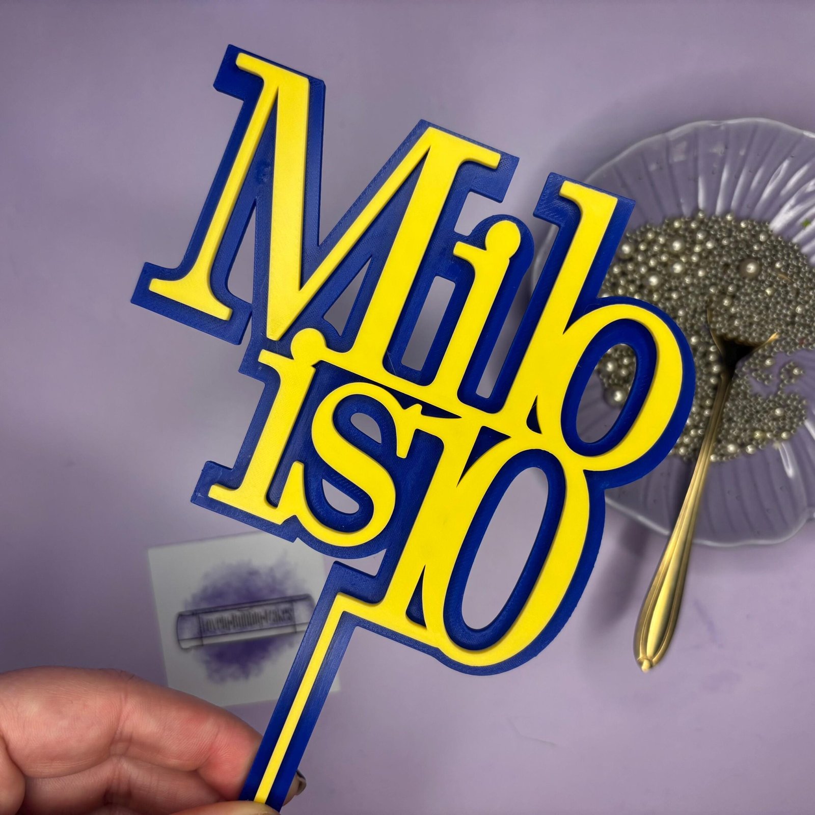 Please note this listing is for a cake name charm only – it is to be placed or stuck onto the side/top of a cake and no stick is included.