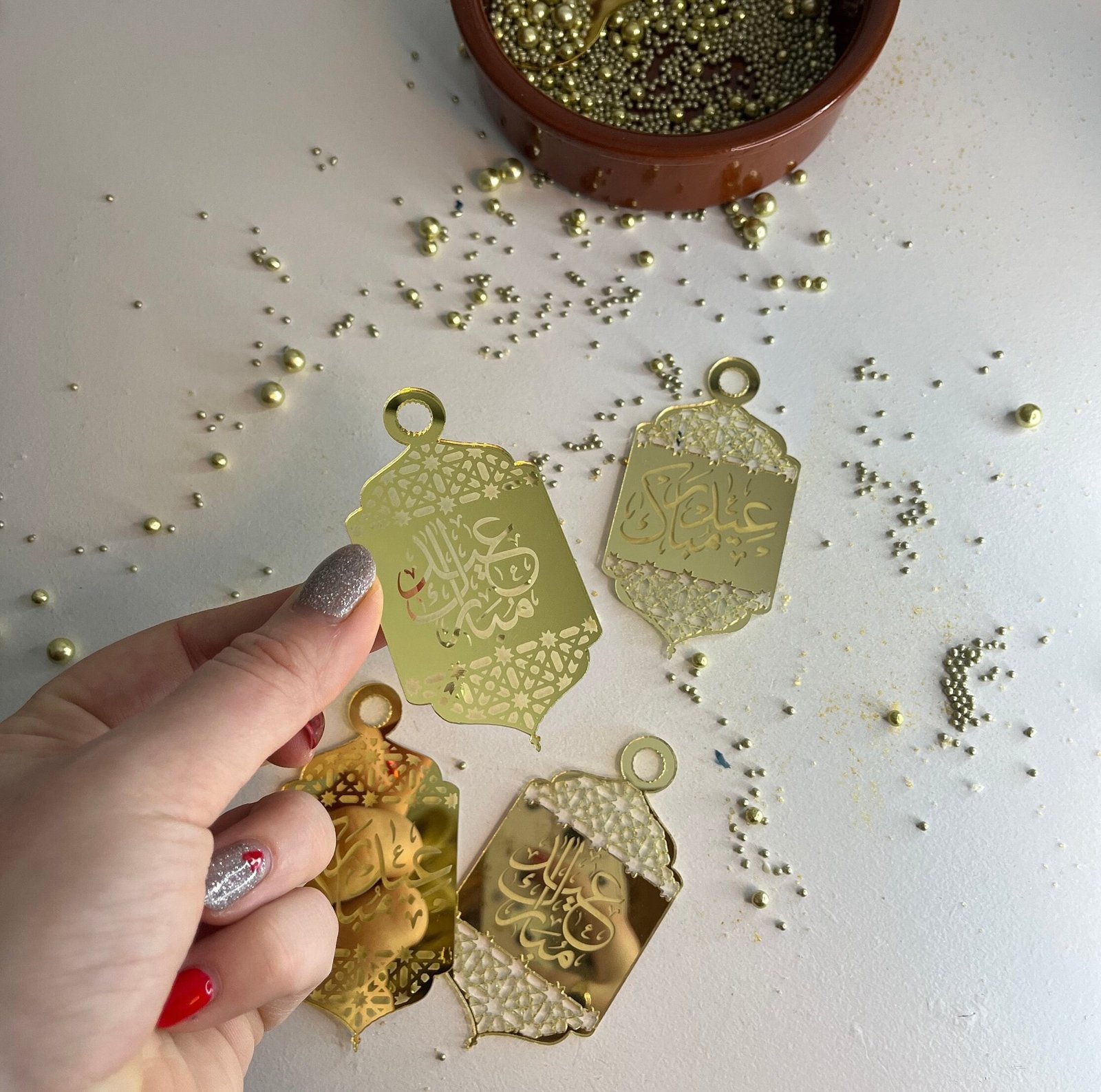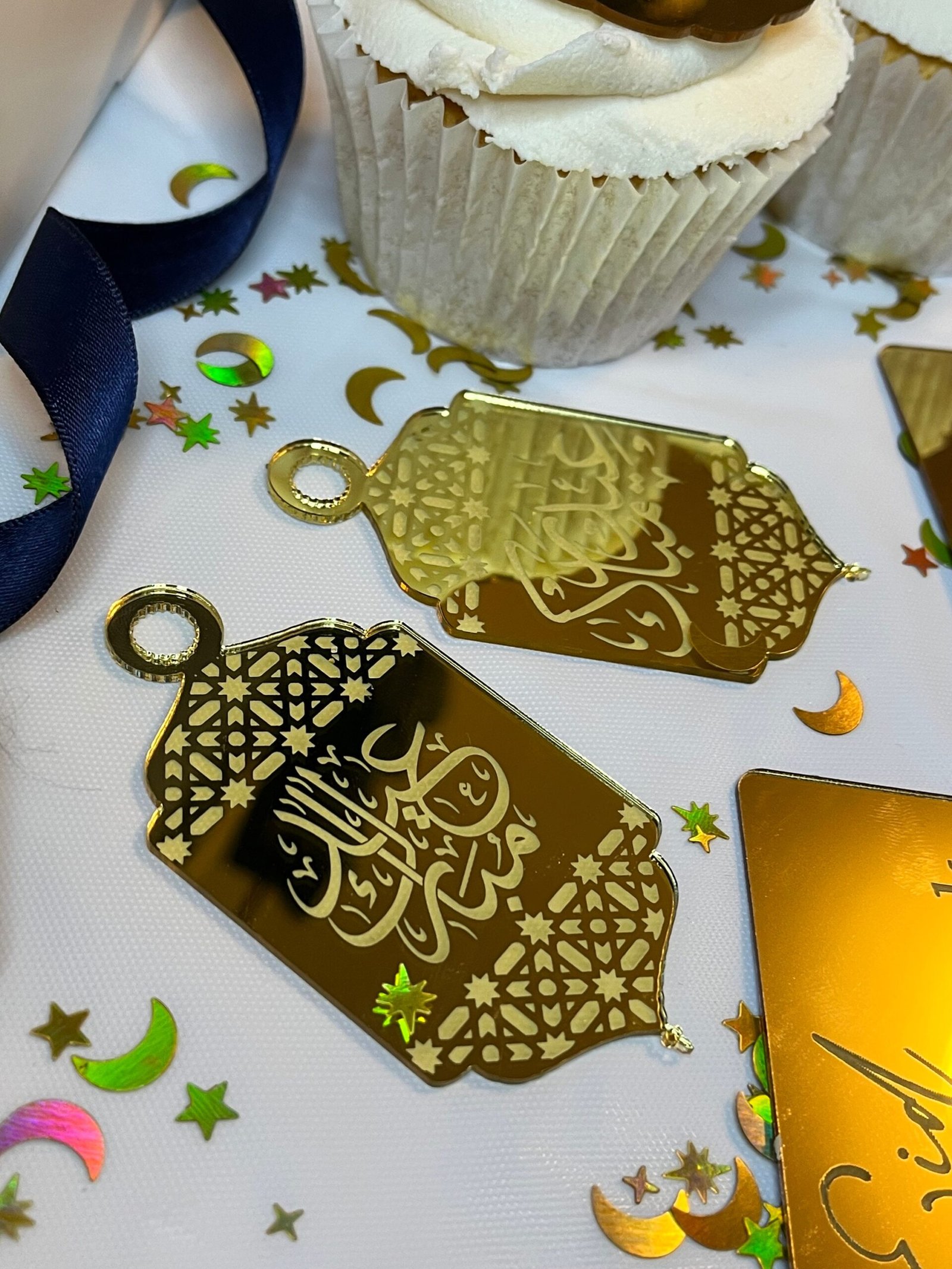 Eid Mubarak gold acrylic tag – cupcake topper, cake topper, gift tag – Lovely Bubbly Makes – Arabic Script