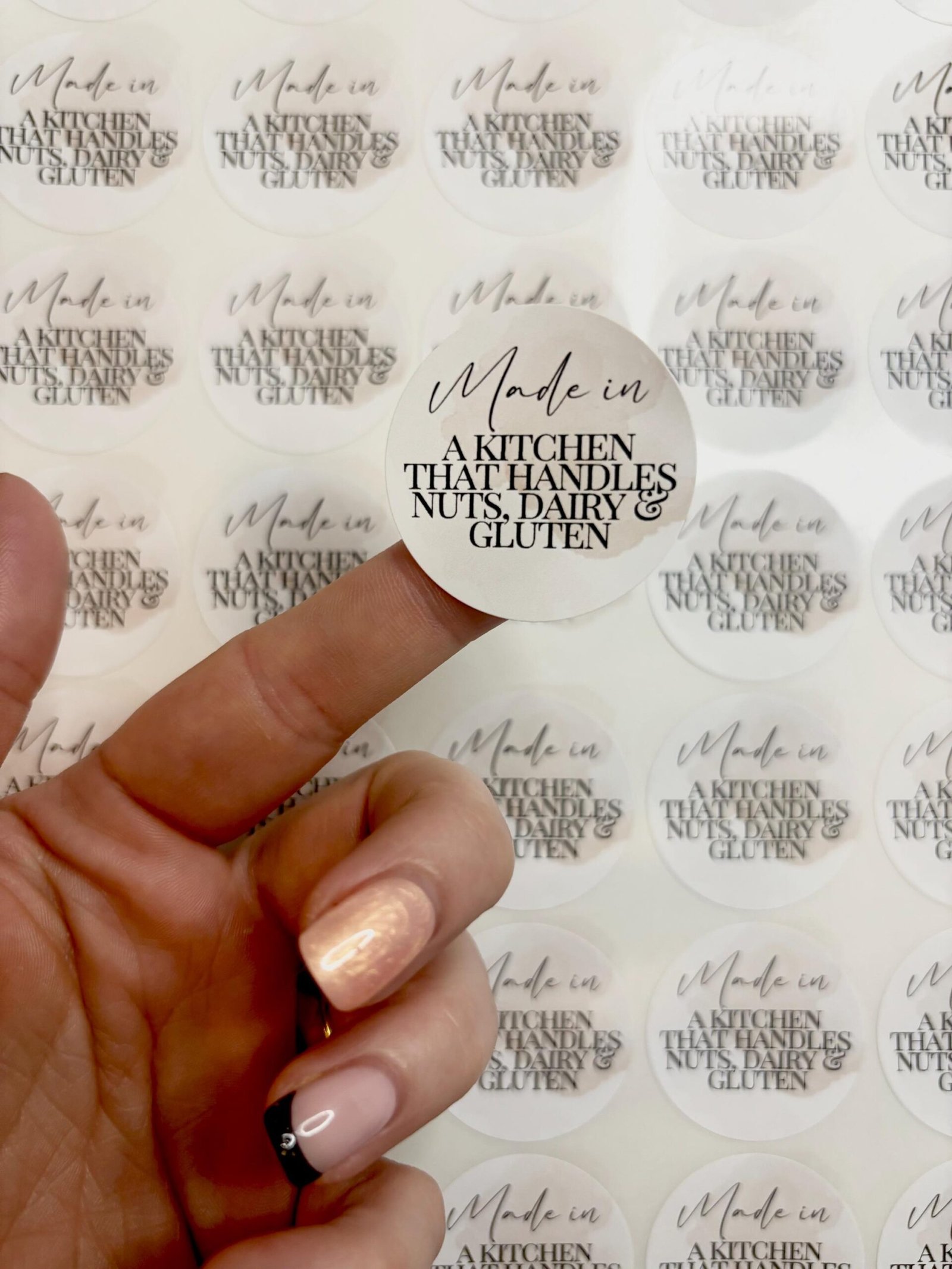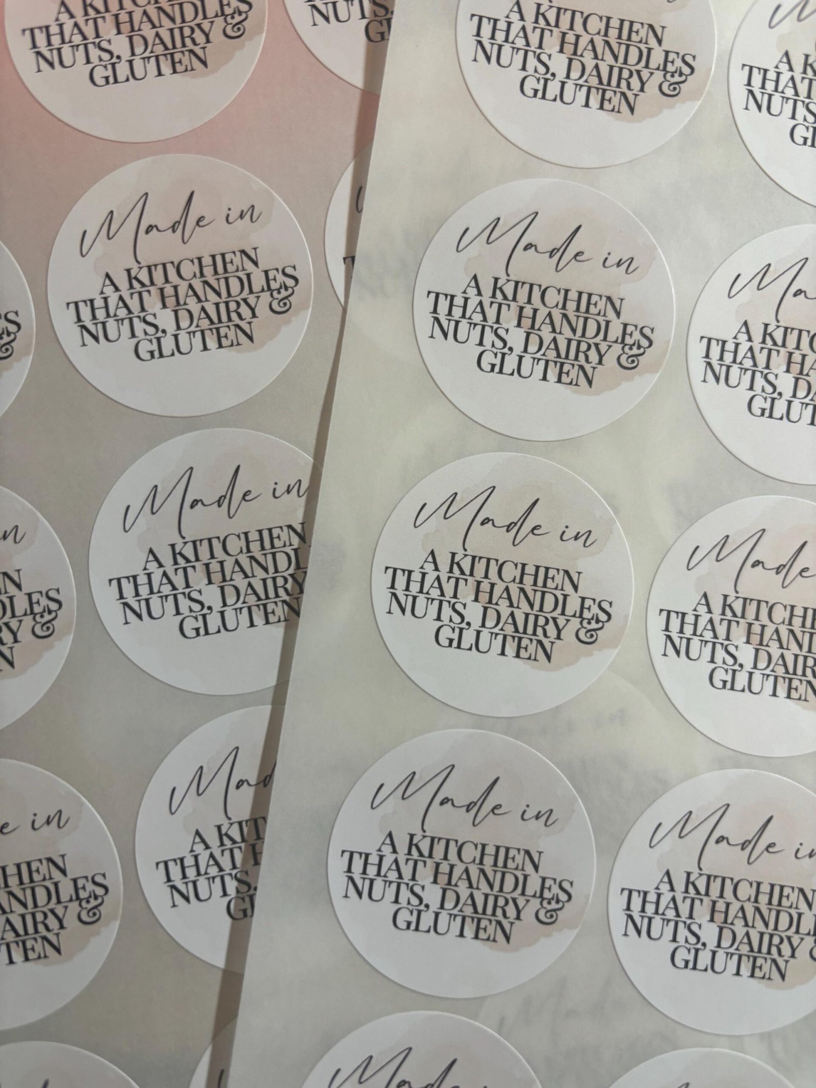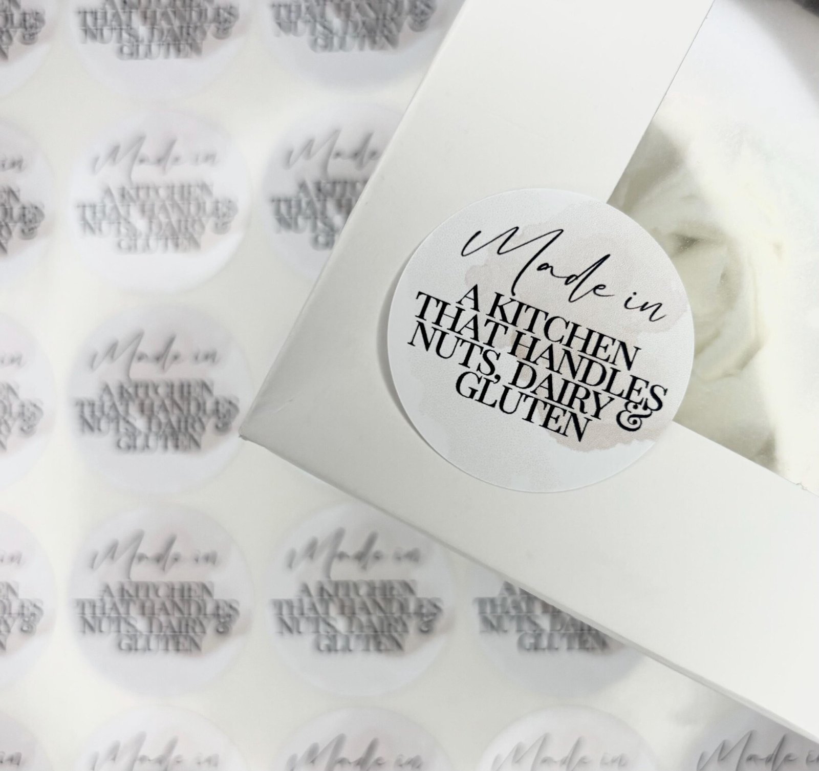 Gloss Allergen Business Stickers – food fridge instruction label – Gluten, Dairy, Nuts – watercolour packaging