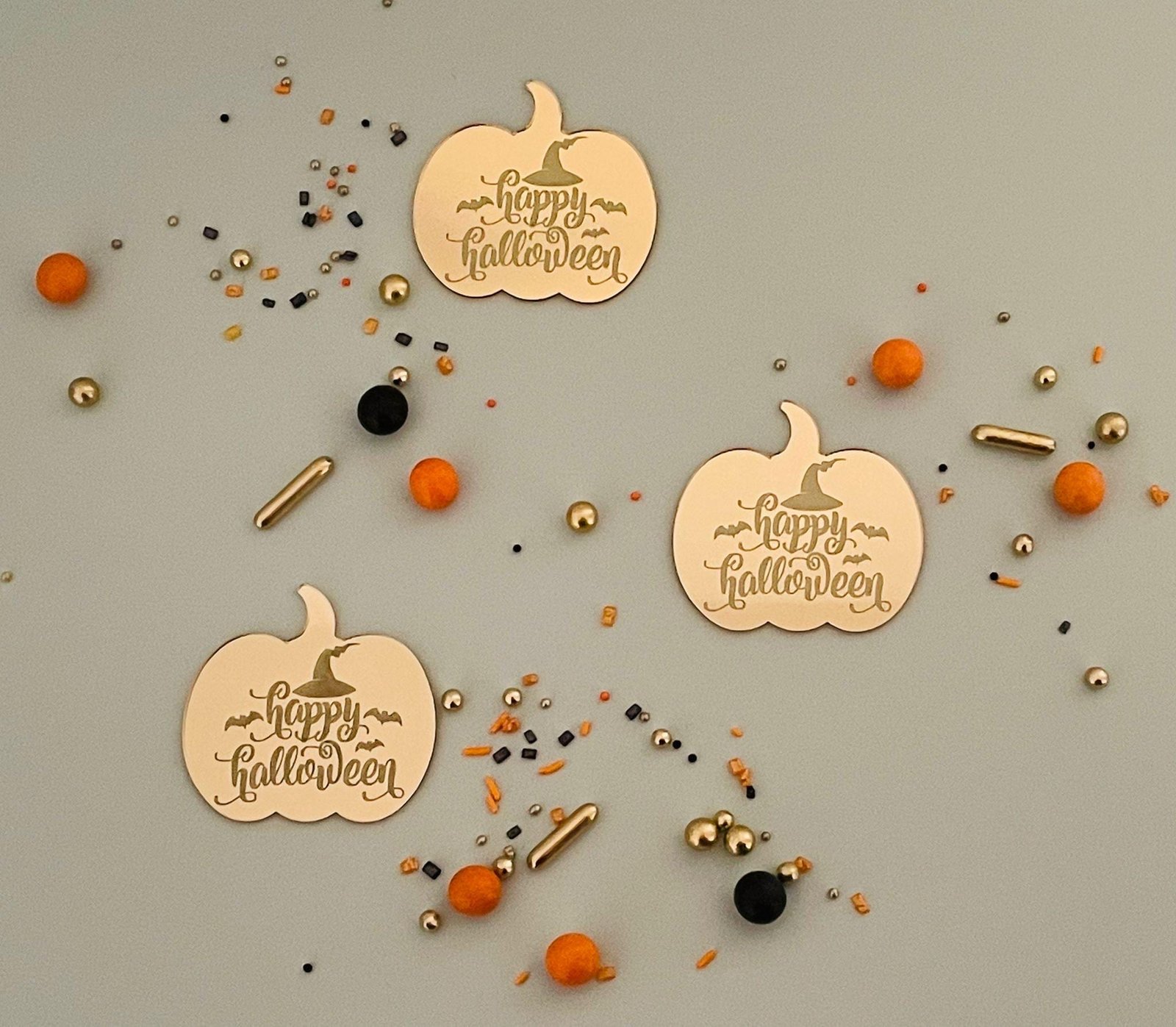 Happy Halloween gold acrylic tombstone grave – cupcake topper, cake topper – Lovely Bubbly Makes – Trick or Treat
