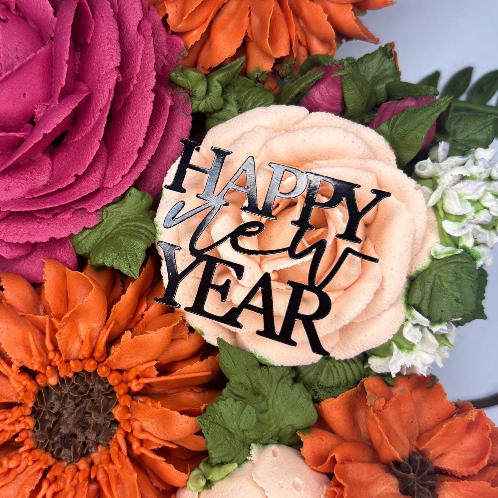 Happy New Year Cupcake Topper Script Font Hello 2025 Bundle – Customisable – Gold Mirror and Black Mirror Card