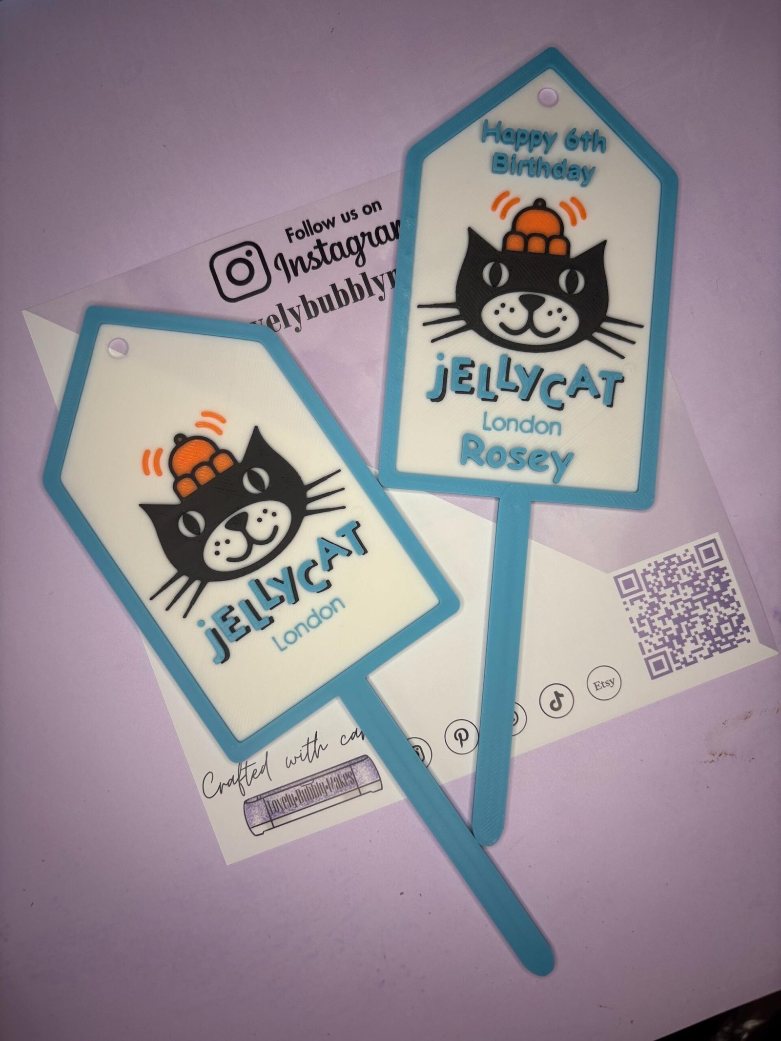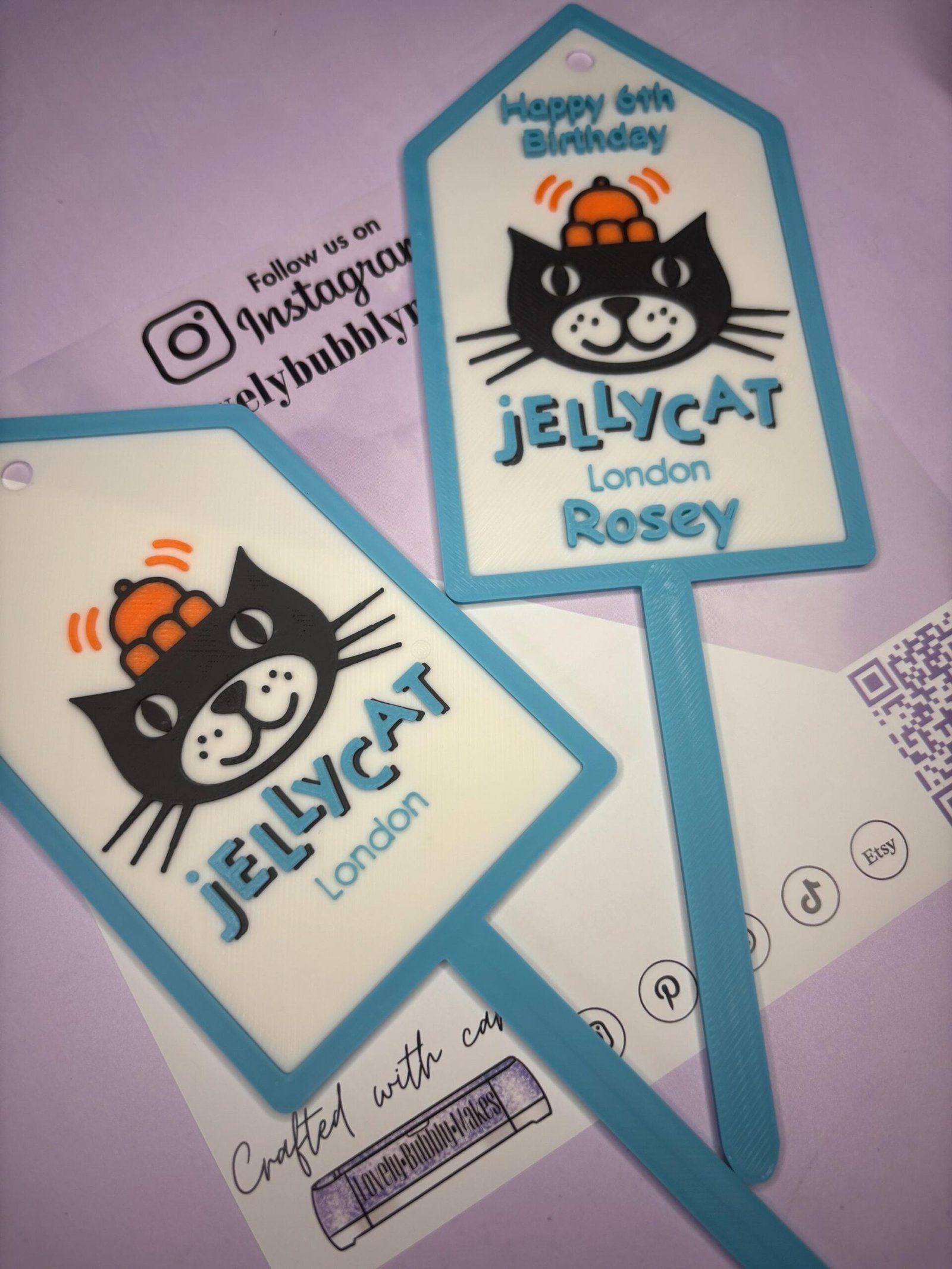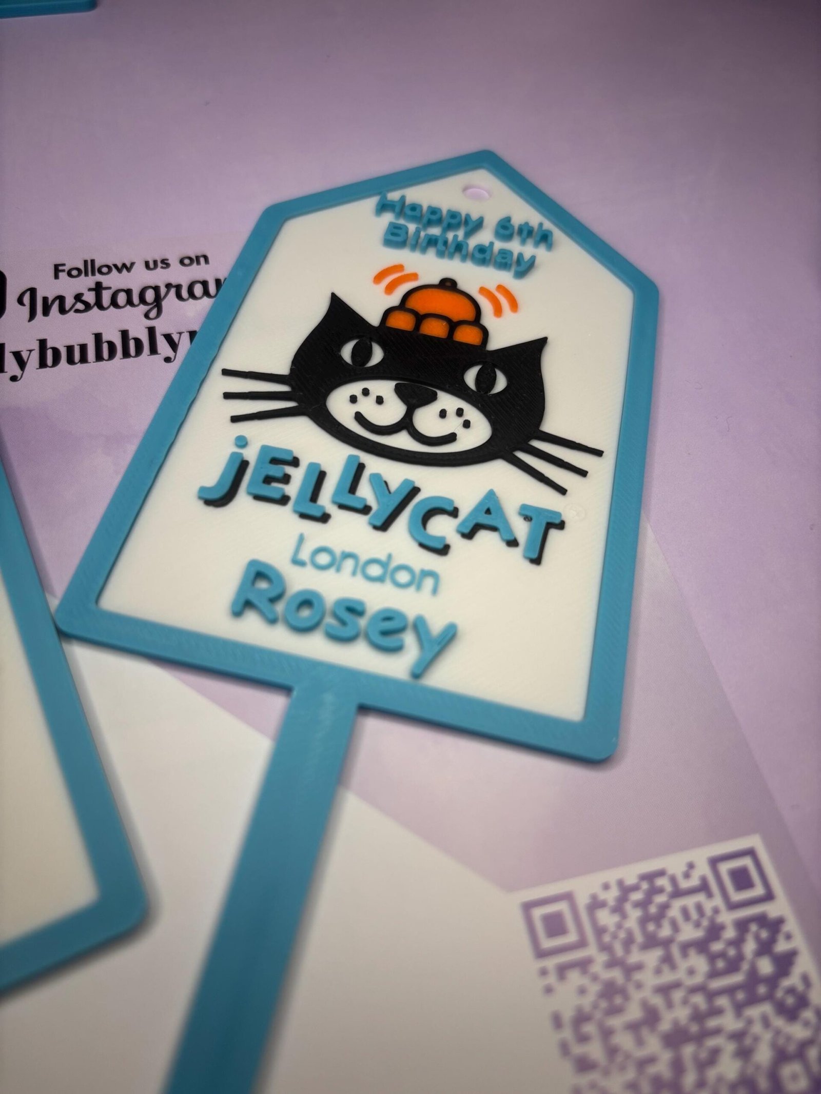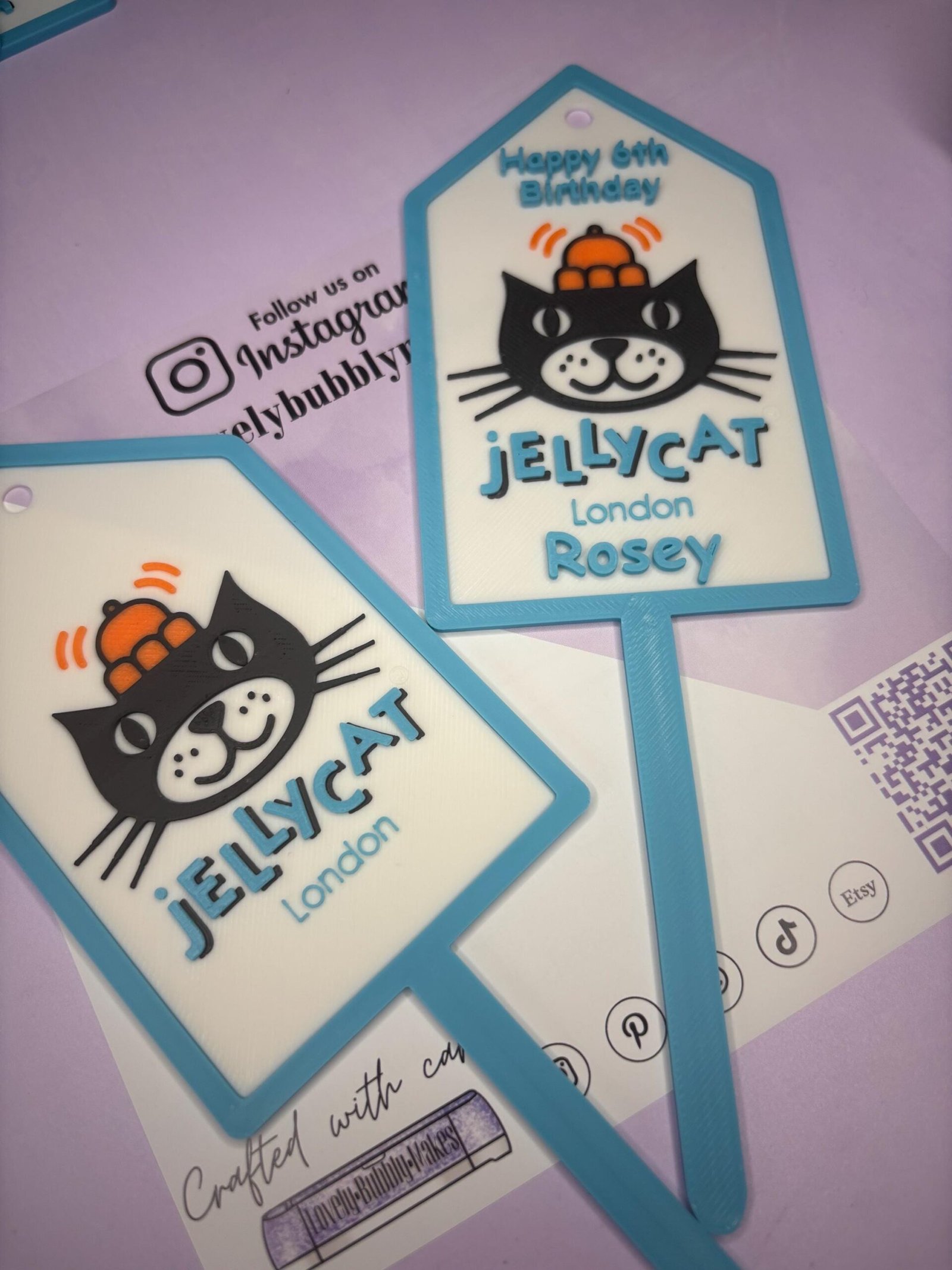 Acrylic Style JellyCat Inspired Swing Tag, Cake Topper with spike / Collectible – 3D Printed – Customisable – Lovely Bubbly Makes