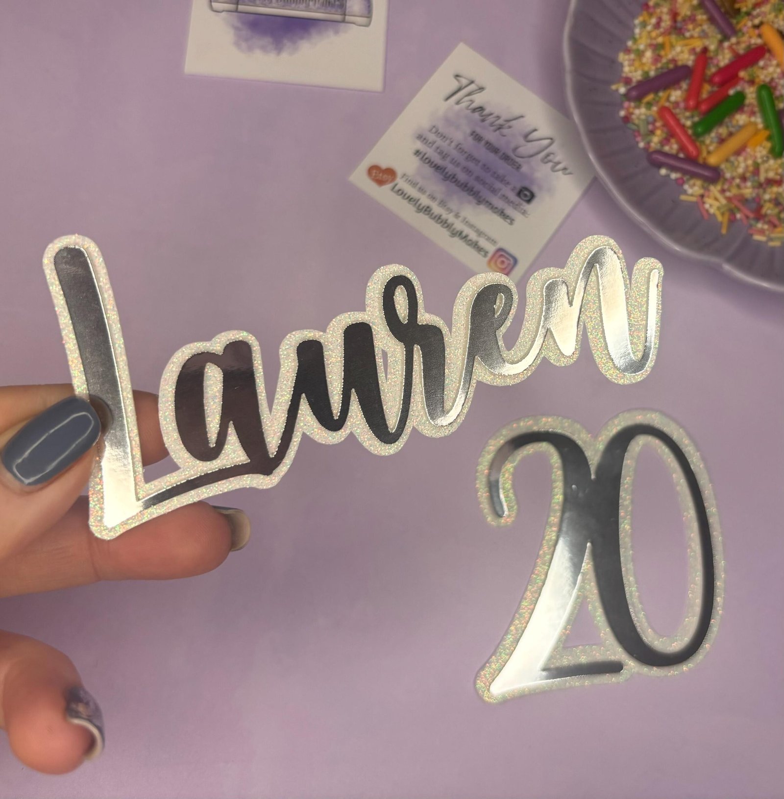 Personalised Name / Any Wording Cake Charm, Cake Topper, Cupcake Topper – Lovely Bubbly Makes – Bespoke Cake Charm