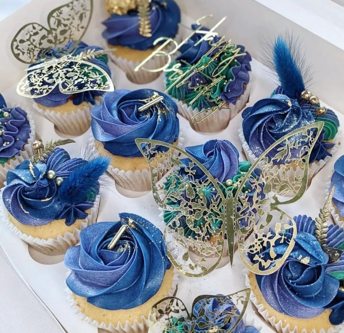 Metallic Foil Lace Detailed Butterflies – Cake or cupcake toppers/decorations