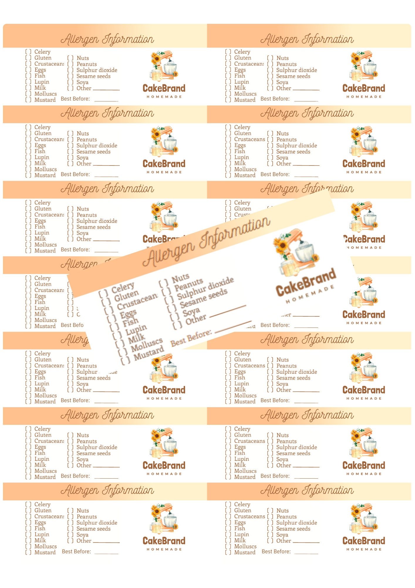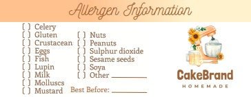 Personalised Allergen Stickers for Bakes – Allergy Information Stickers – Food Allergy Labels for Bakers, Caterers, Take Aways, Postal Cakes