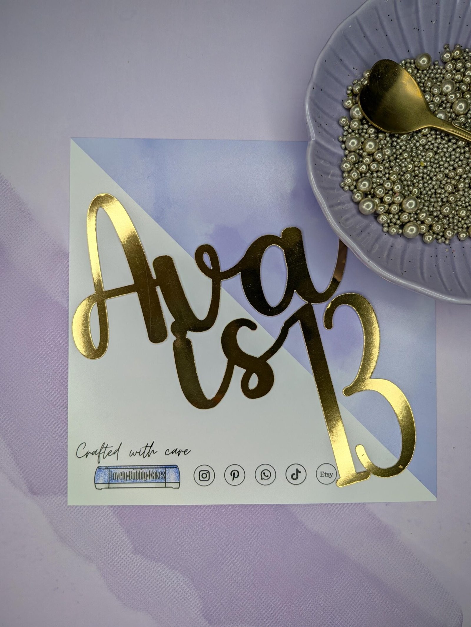 Personalised Bespoke Birthday Cake / Cupcake Topper – Name is Age – Lovely Bubbly Makes – any name and age, customisable