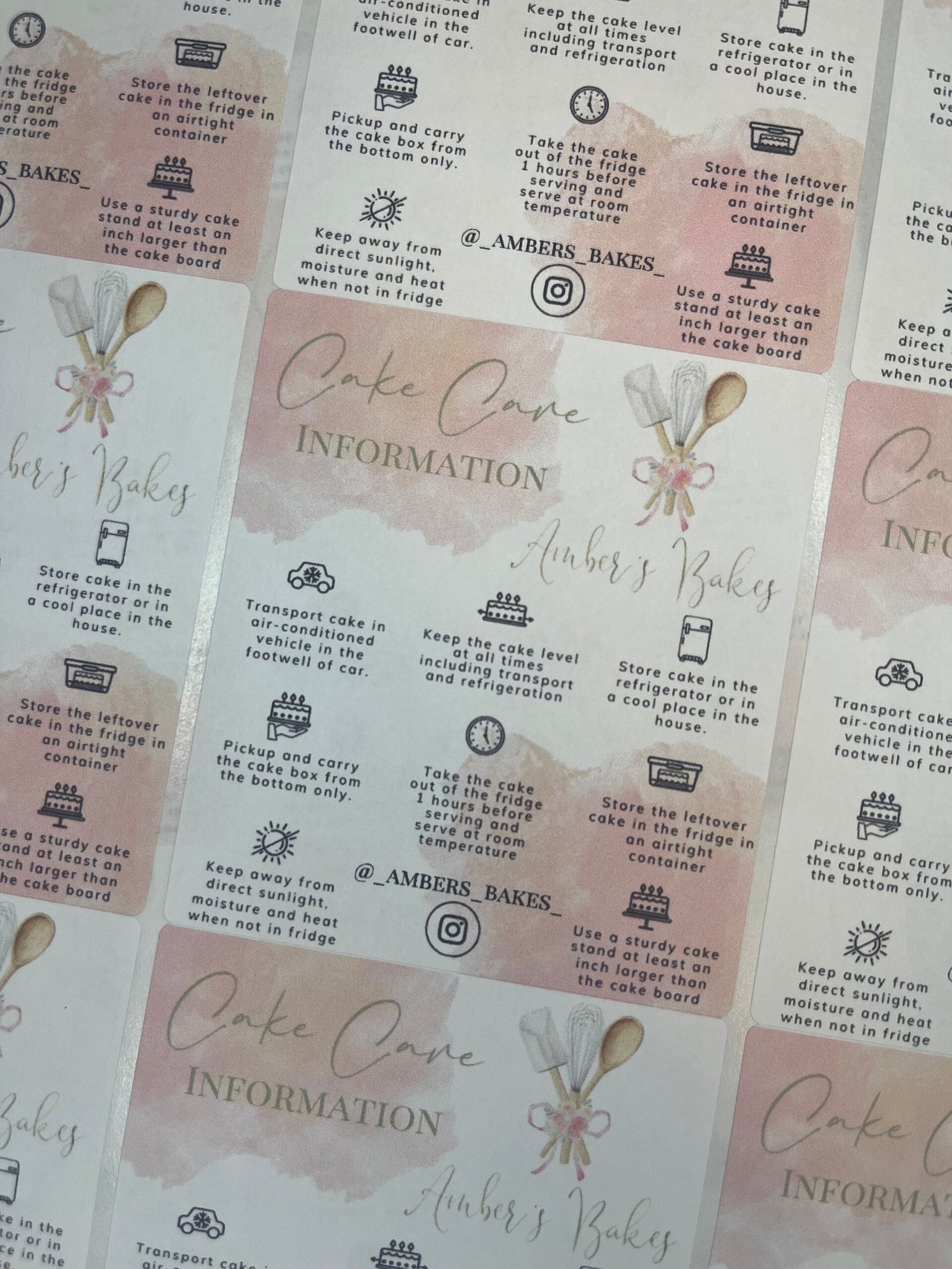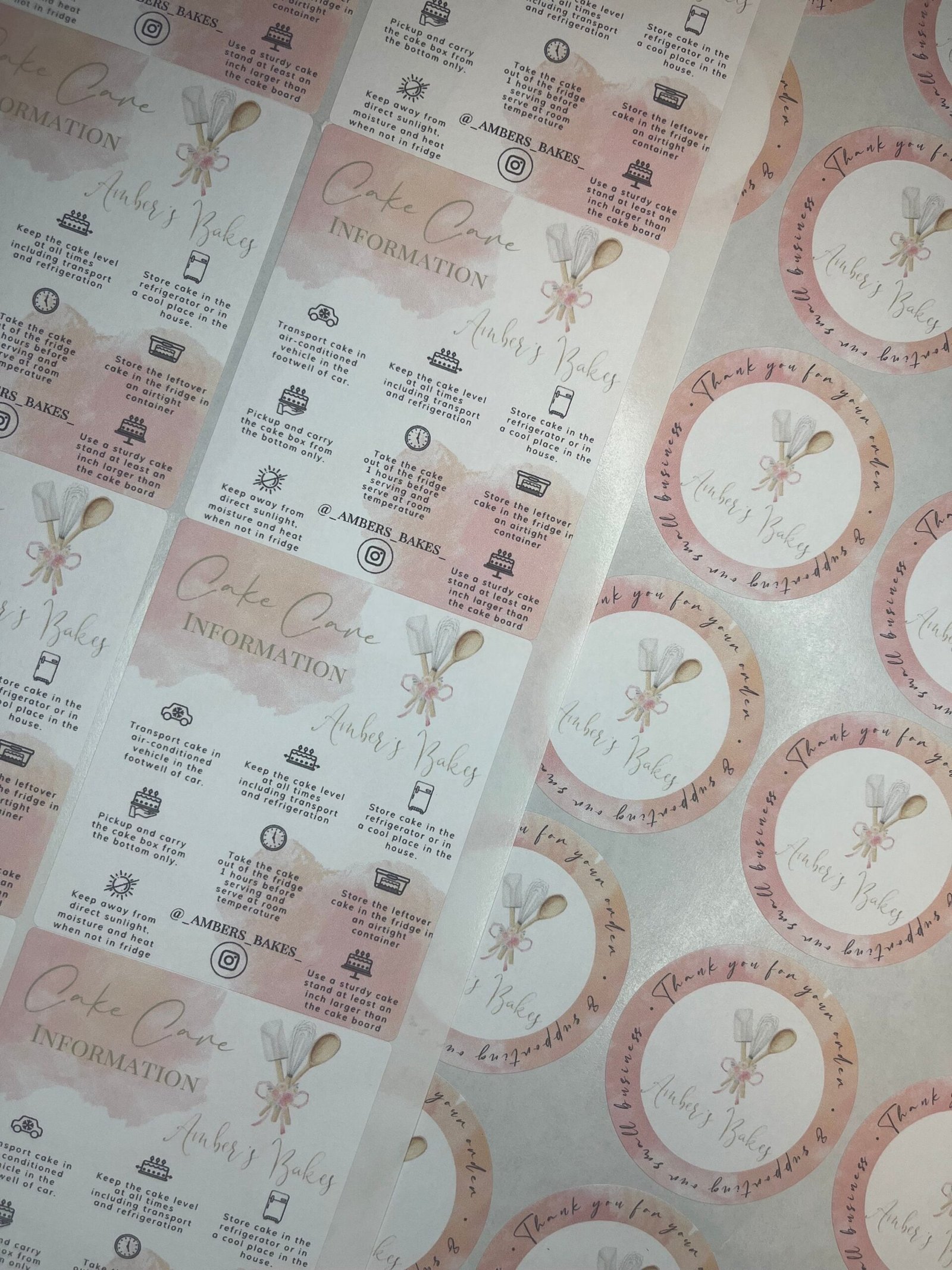 Personalised Cake Care Information Stickers – Cake Information Stickers – Sticker Labels for Businesses and Bakers