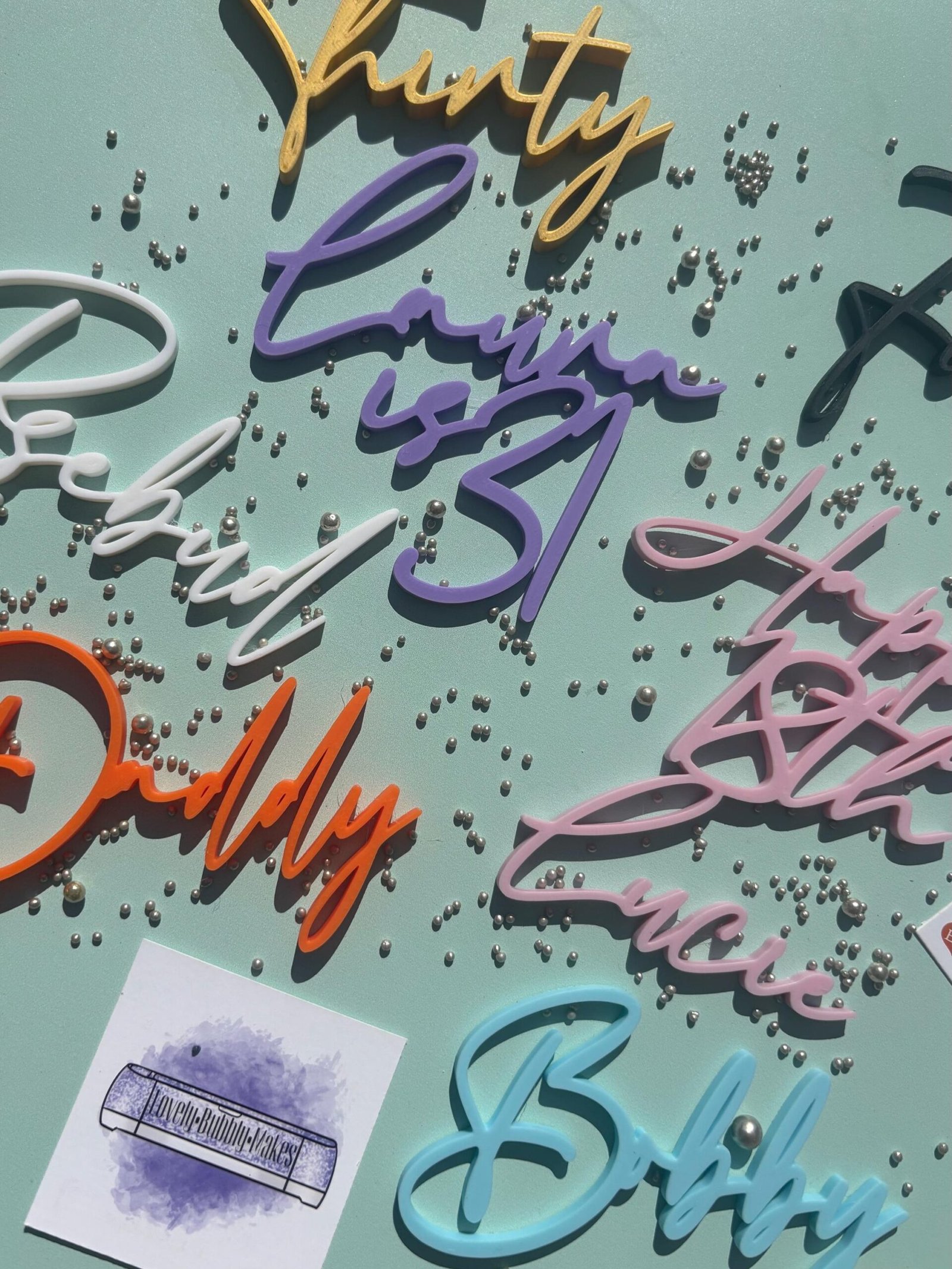 Personalised Cake Charm Topper – 3D Food Safe Printed – Quality PLA acrylic style cake / cupcake topper – Lovely Bubbly Makes