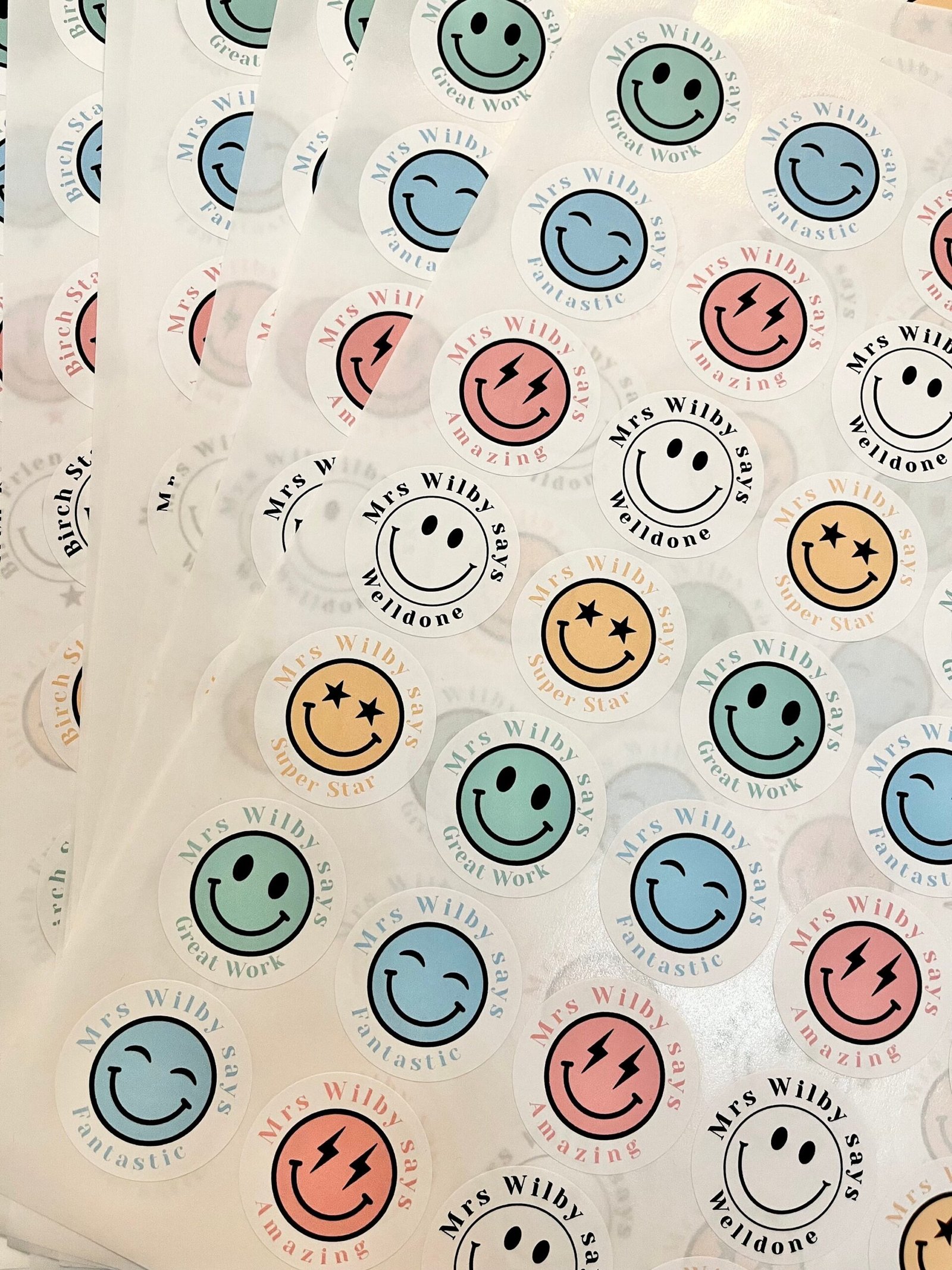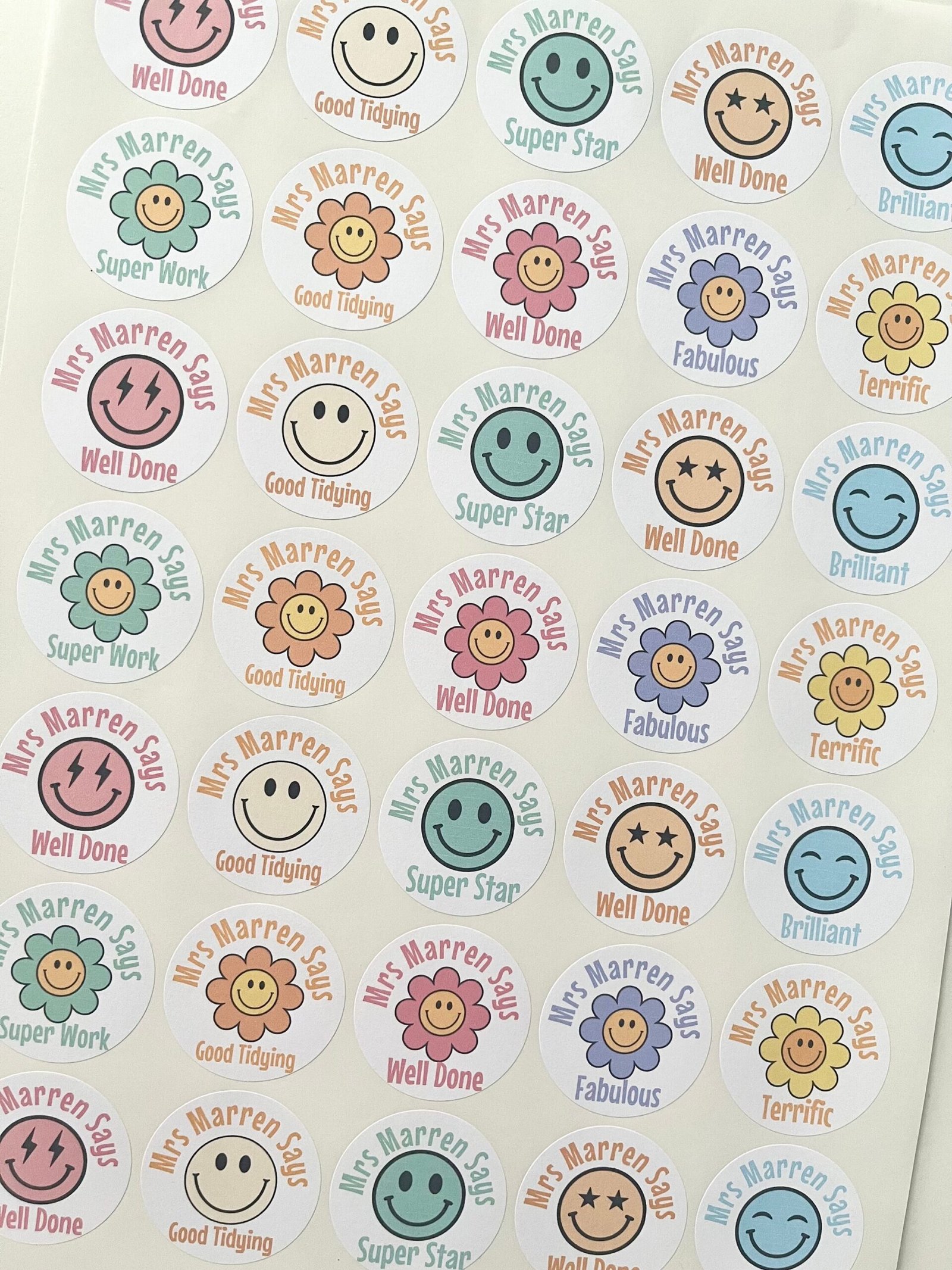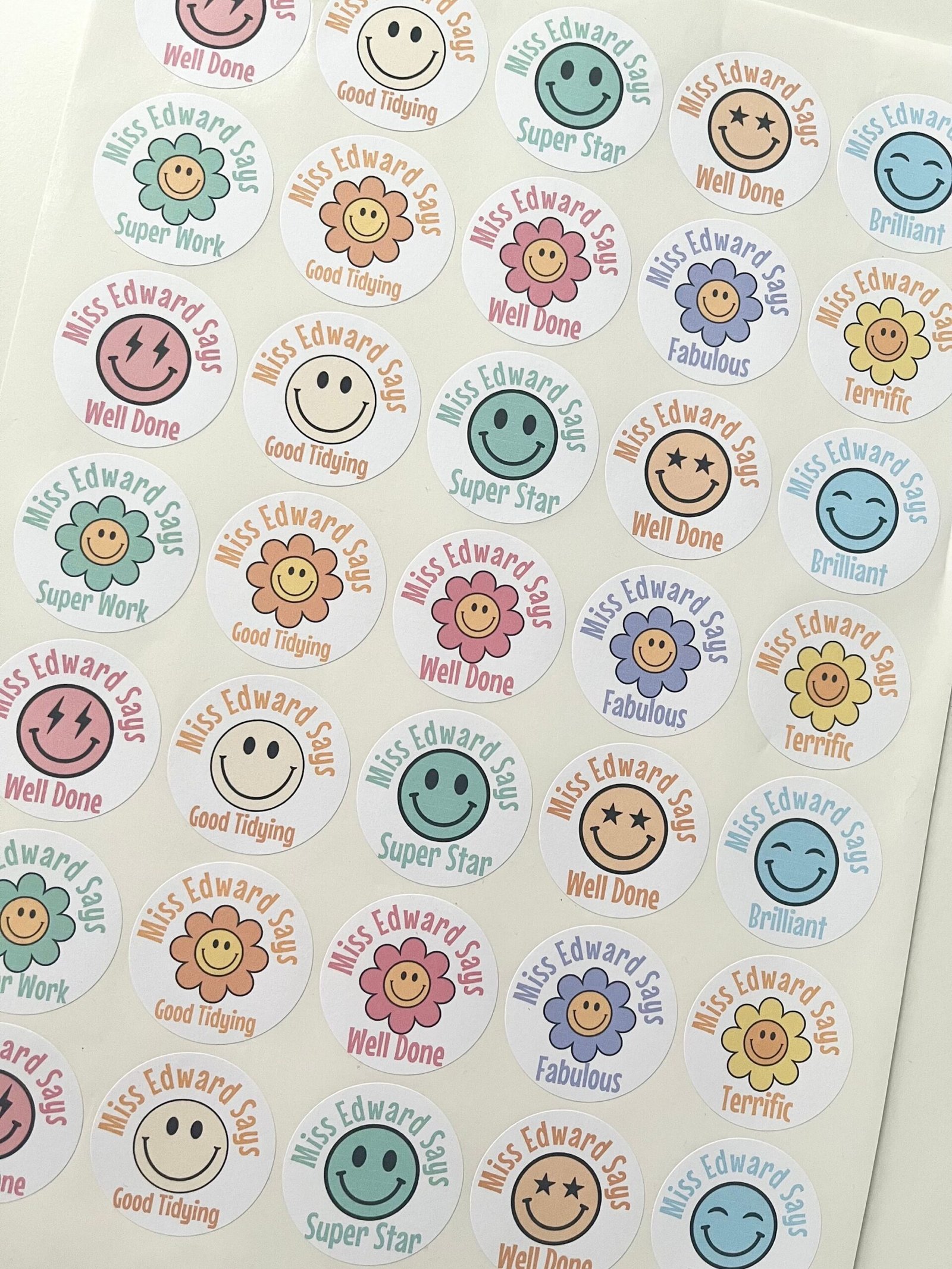35 per stickers sheet – Personalised Teacher stickers – Praise, Welldone, Encouragment class school stickers.