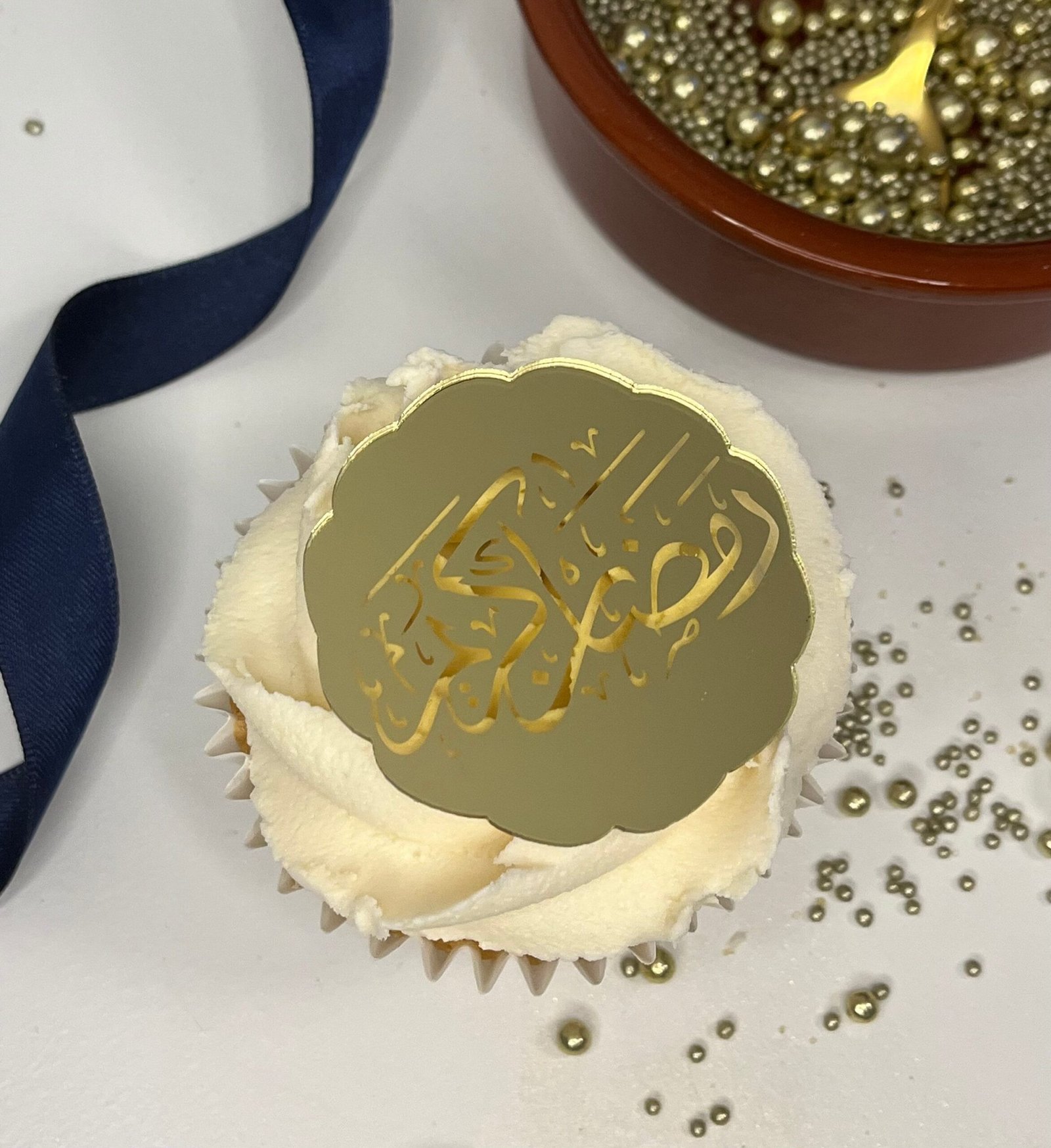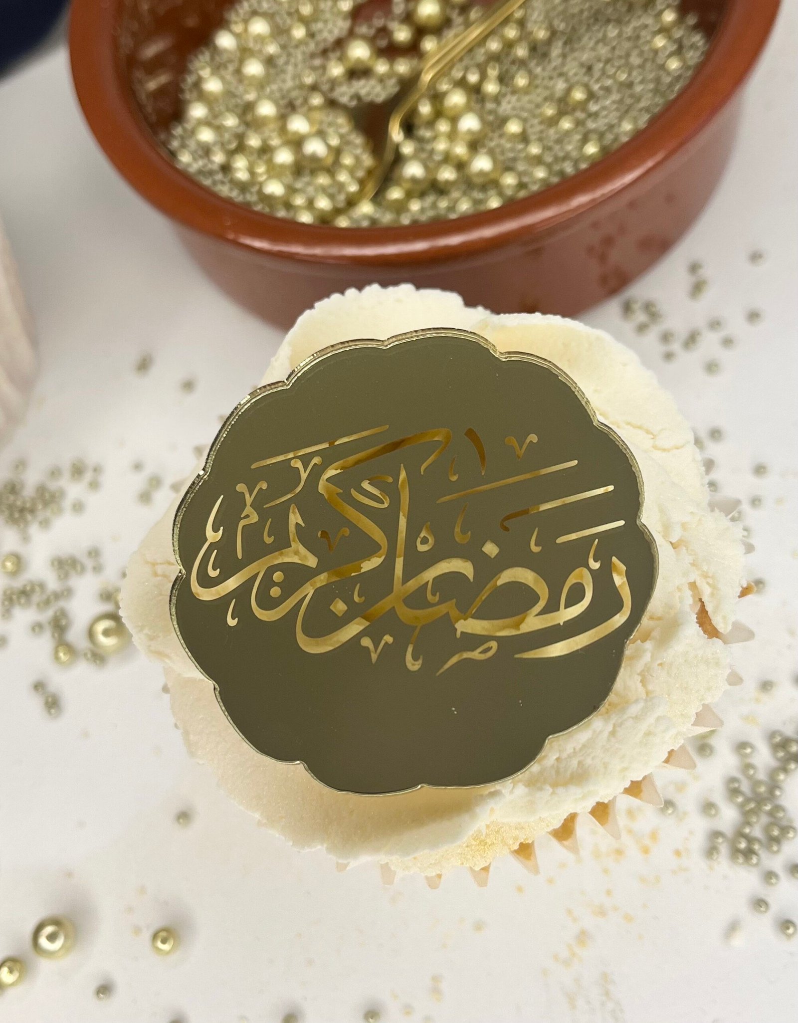 Ramadan Mubarak gold acrylic cupcake disc – cupcake topper, cake topper, Arabic Script – Lovely Bubbly Makes