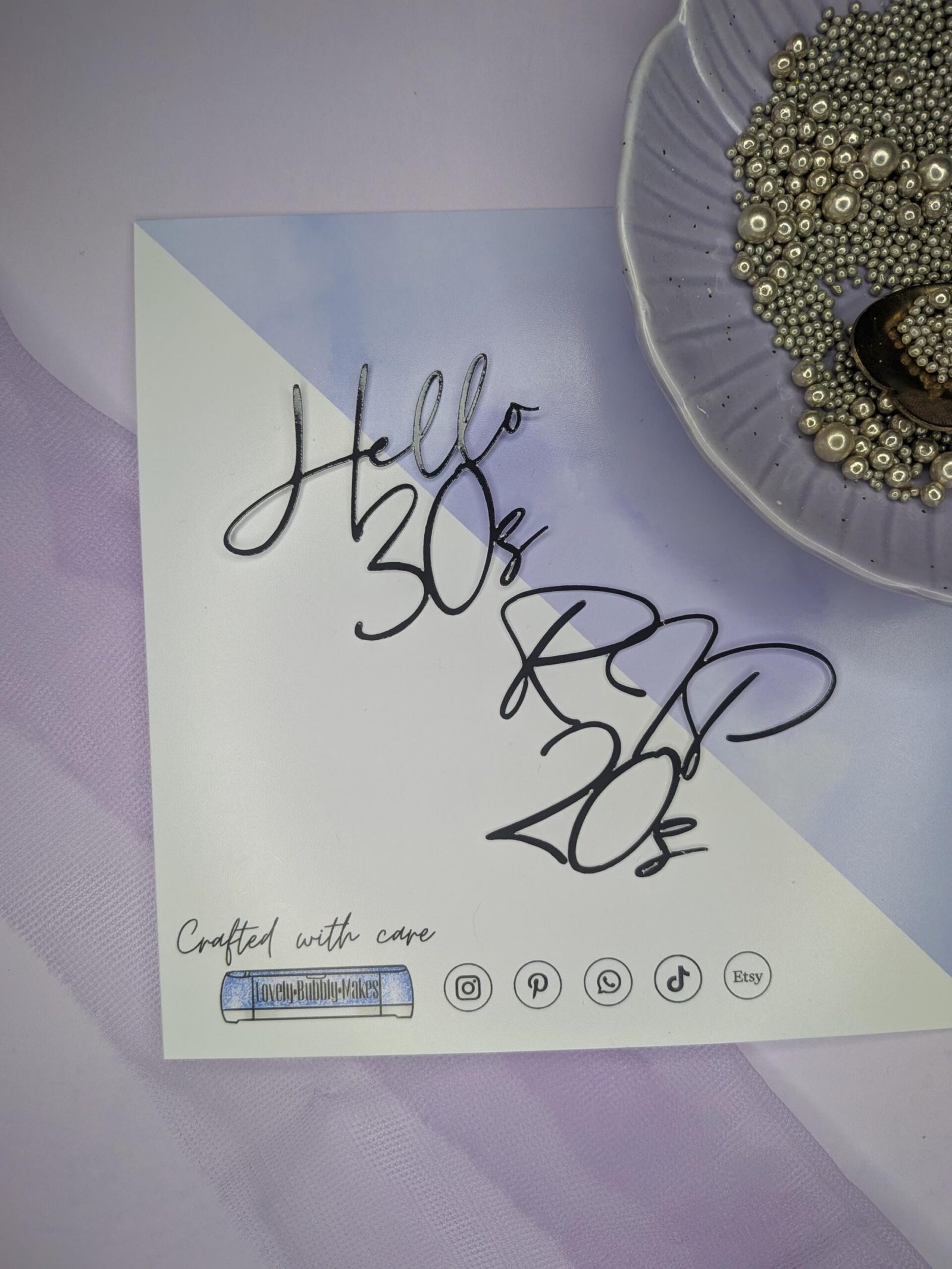 Our cake & cupcake toppers are produced from high quality, single sided, 230-300gsm cardstock OR high quality acrylic. If you have any questions please get in touch via messages or through Instagram.